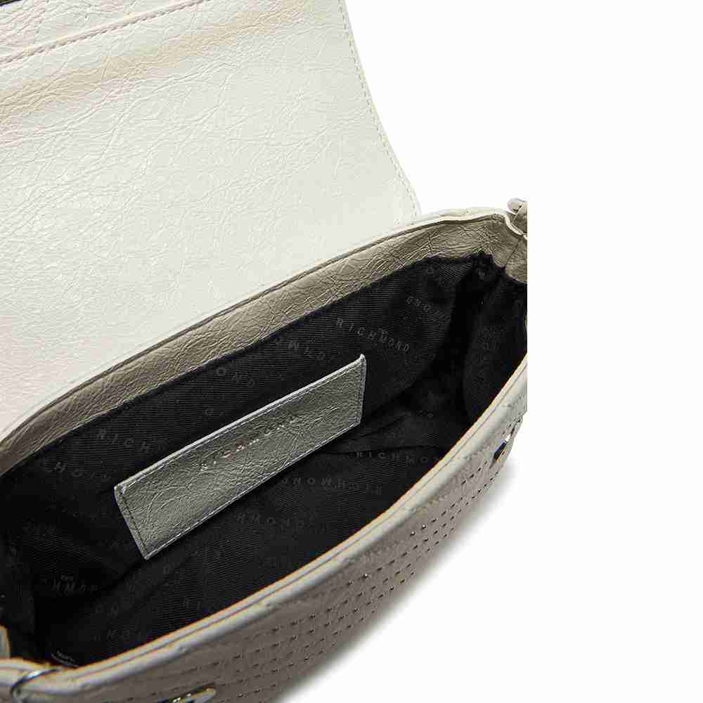 Borsa donna John Richmond Borsa John Richmond in pelle plisettata con borchie e dettagli in argento. La borsa presenta una tracolla in catena regolabile, una chiusura magnetica e un unico scompartimento interno.