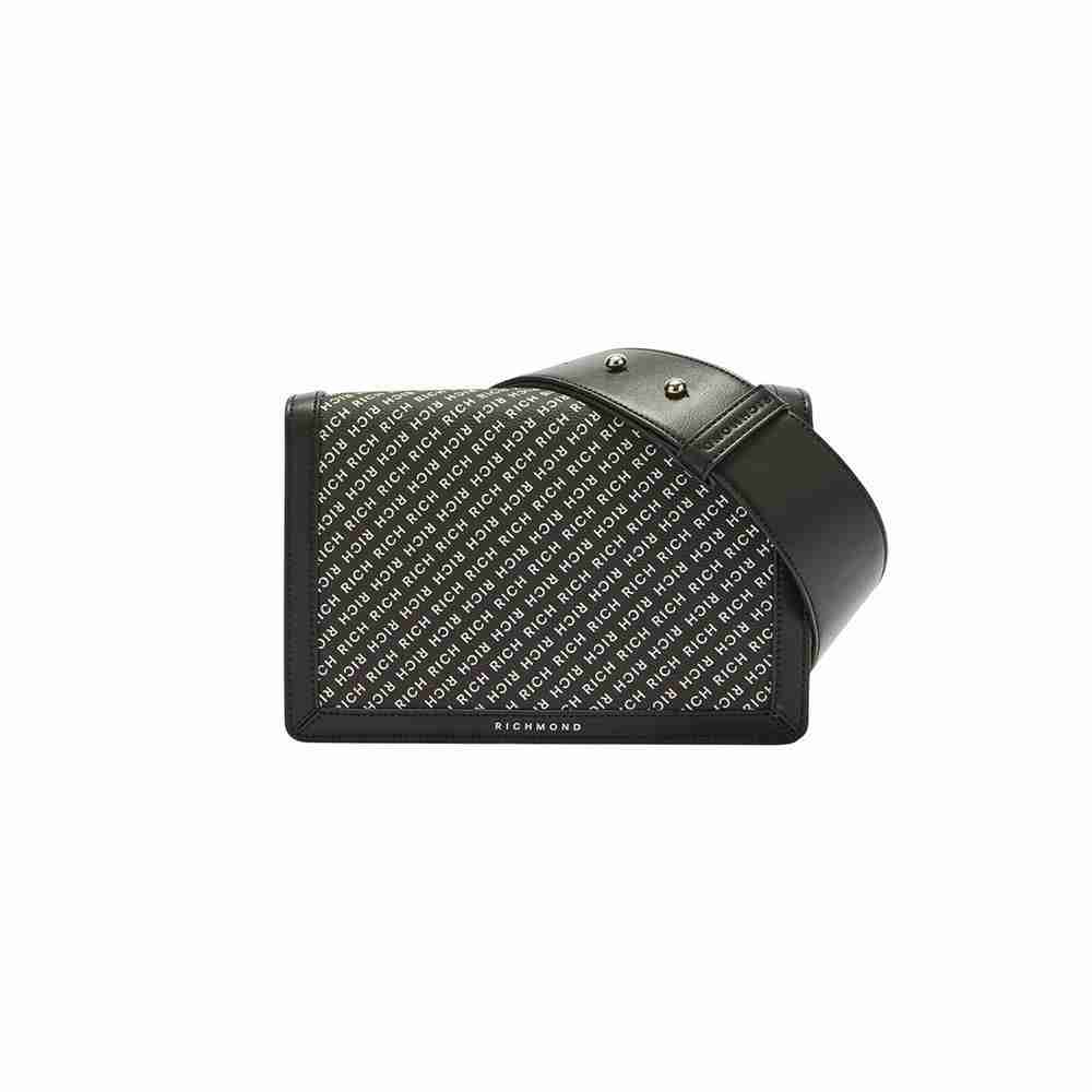 Borsa donna John Richmond Borsa John Richmond in ecopelle con lettering ripetuto su tutta la superficie. Chiusura con cerniera, interno logato e lettering del brand in monogram a contrasto di colore come unico motivo di decoro