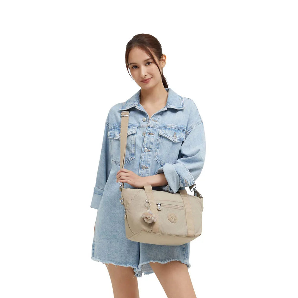 Borsa donna Kipling Art Mini Sign Beige Emb Art Mini in resistente nylon. La borsa dotata di tracolla regolabile e removibile, doppi manici, scimmietta kipling, rifiniture idrorepellenti, una tasca frontale aperta e una tasca con zip.All interno lo scomparto principale include una tasca con zip e scomparti per cellulare, penne e portafoglio.