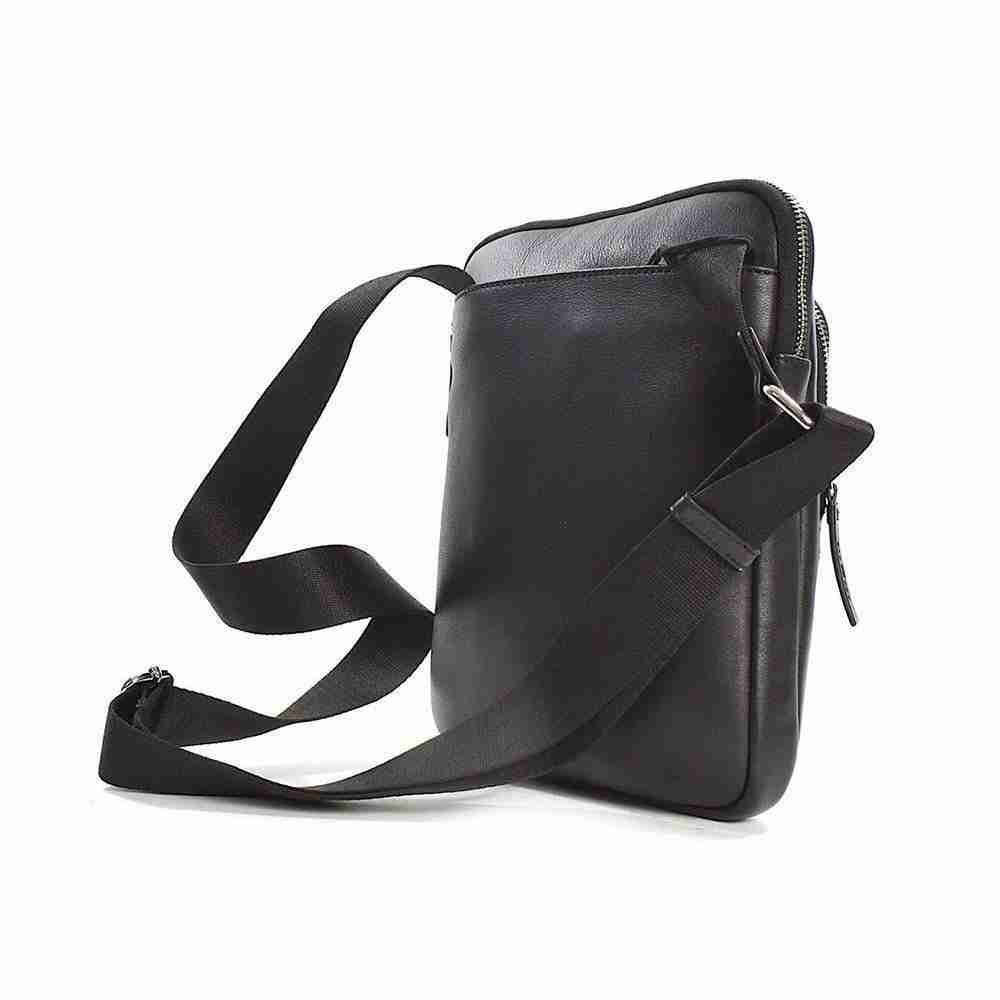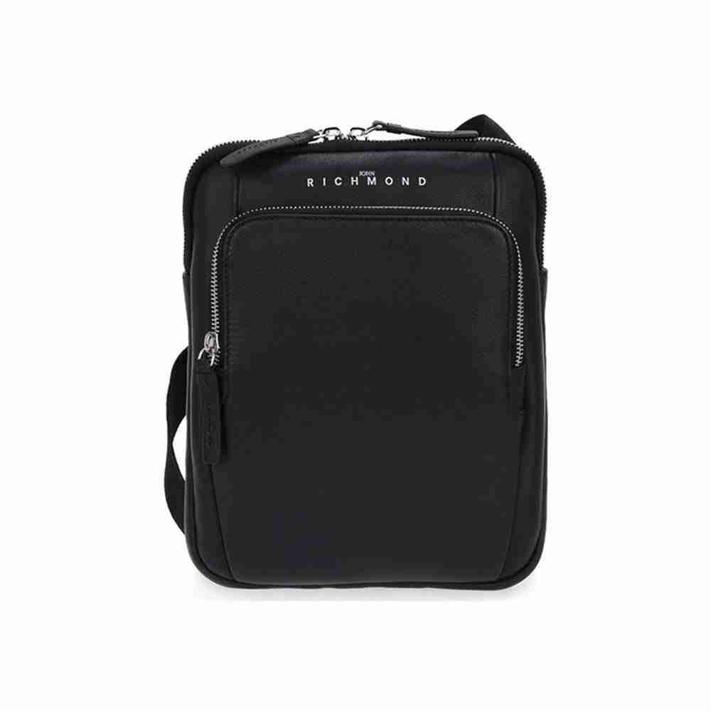 Borsello grande uomo John Richmond Borsello a tracolla uomo John Richmond, realizzata in vera pelle con dettagli in saffiano. Logo frontale a contrasto, chiusura con zip a doppio cursore, tasca frontale con zip, tasca posteriore con chiusura a calamita.Interno foderato in tessuto logato con la presenza di varie tasche multifunzione. Tracolla in tessuto regolabile.