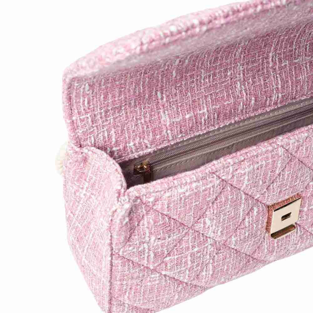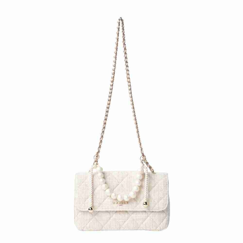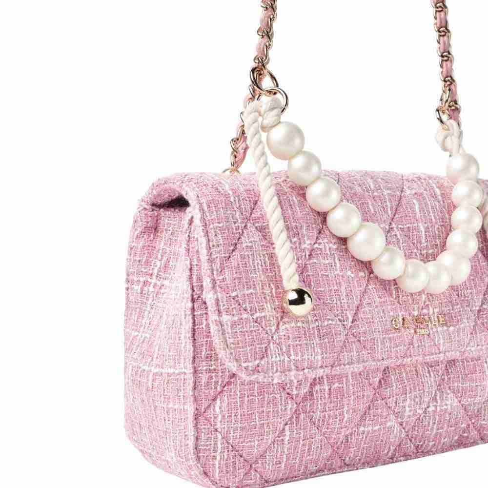 Borsetta donna Gaelle Paris Borsa regular realizzata in tessuto. Chiusura a scatto, scomparto interno con tasca a parete con zip, tracolla intrecciata in ecopelle e metallo, applicazione perle. Logo Gaelle Paris in metallo.