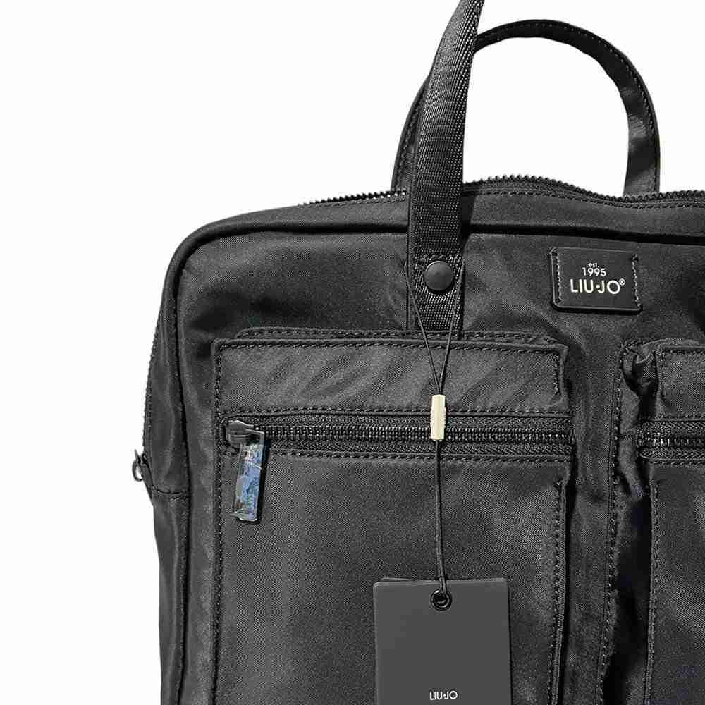 Cartella Liu Jo Easybuss Cartella uomo Liu Jo modello Easybuss, realizzata in tessuto impermeabile. La cartella presenta scomparto centrale con chiusura con zip, due tasche frontali, ampia tasca posteriore e logo frontale a rilievo. Al suo interno dotata di scomparto imbottito porta pc e varie tasche multifunzione. Tracolla regolabile e removibile.