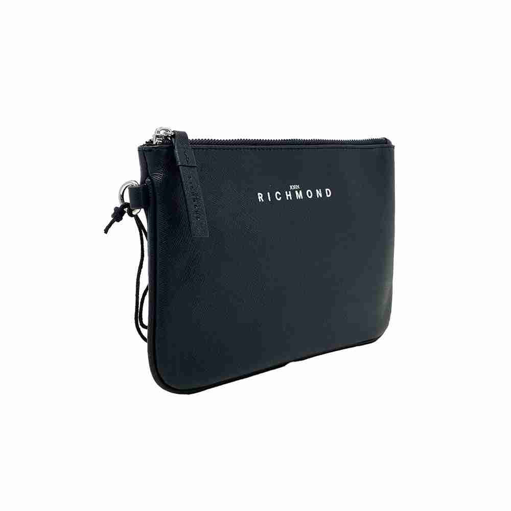 Pochette uomo John Richmond Pochette piccola in pelle saffiano con stampa logo. Chiusura zip, internamente ha una tasca laterale con cerniera. Manico removibile.