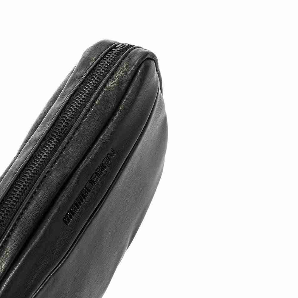 Pochette uomo Momo Design Pochette uomo Momo Design in ecopelle. Pochette dotatat di manichetto e tasca esterna con zip. Pellame morbido. Chiusura principale con zip.