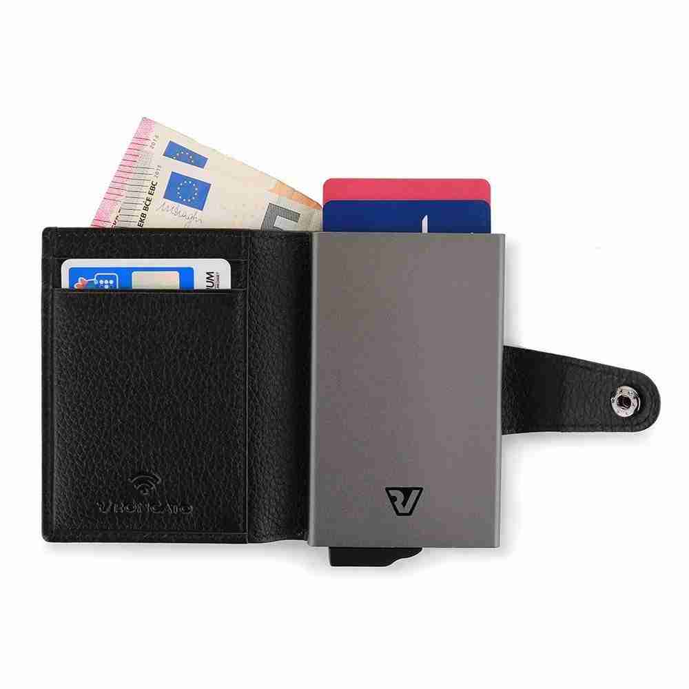 Portacarte Roncato Iron 4.0 Portafoglio uomo piccolo Roncato 4.0. Realizzato in pelle nappa di alta qualit , con corpo porta carte di credito in alluminio, ha l accesso rapido laterale per estrarre le carte senza aprire il portafoglio.Tasca posteriore esterna portamonete chiusa da zip e vano portabanconote. Schermatura RFID per la protezione da clonazioni.