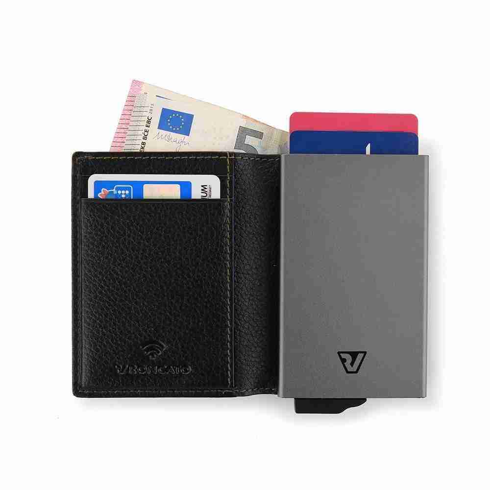 Portacarte Roncato Iron 4.0 Portafoglio uomo piccolo Roncato 4.0. Realizzato in pelle nappa di alta qualit , con corpo porta carte di credito in alluminio, accesso rapido laterale per estrarre le carte senza aprire il portafoglio e vano portabanconote.Schermatura RFID per la protezione da clonazioni.
