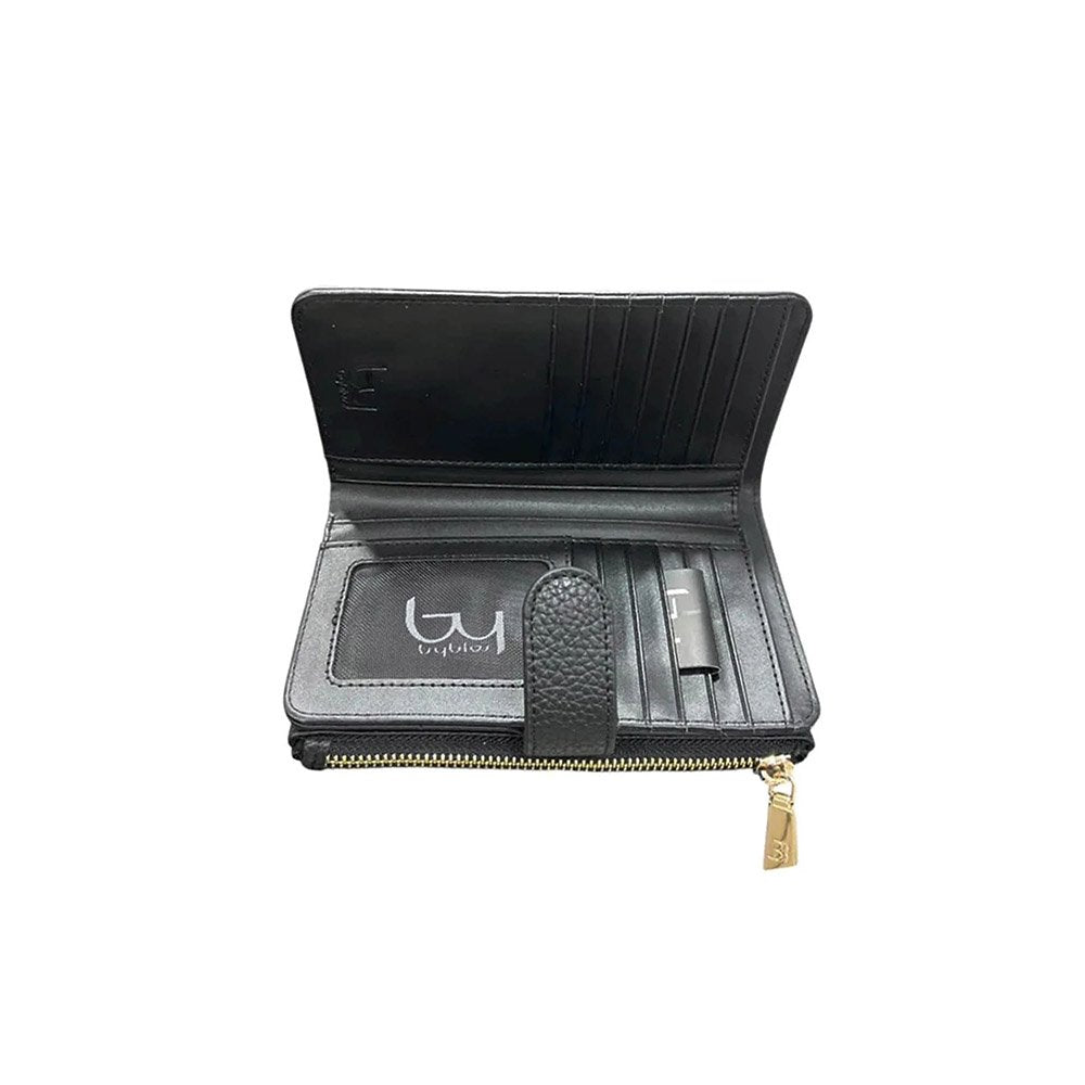 Portafoglio donna By Byblos Naos Portafoglio in ecopelle con scomparti interni per banconote, slots per documenti e carte di credito e tasca per monete con zip. La chiusura con bottone.