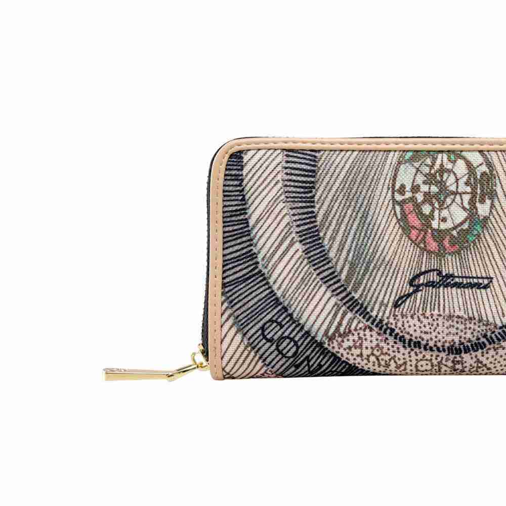 Portafoglio donna Gattinoni Maya Portafogli Maya Planetarium Watercolor large in nylon resistente e dettagli in pelle. Internamente presenta una fodera jacquard logata e otto scomparti per banconote, organizzati in modo impeccabile.La chiusura con zip e le dimensioni lo rendono un accessorio sicuro e spazioso per ogni esigenza quotidiana.