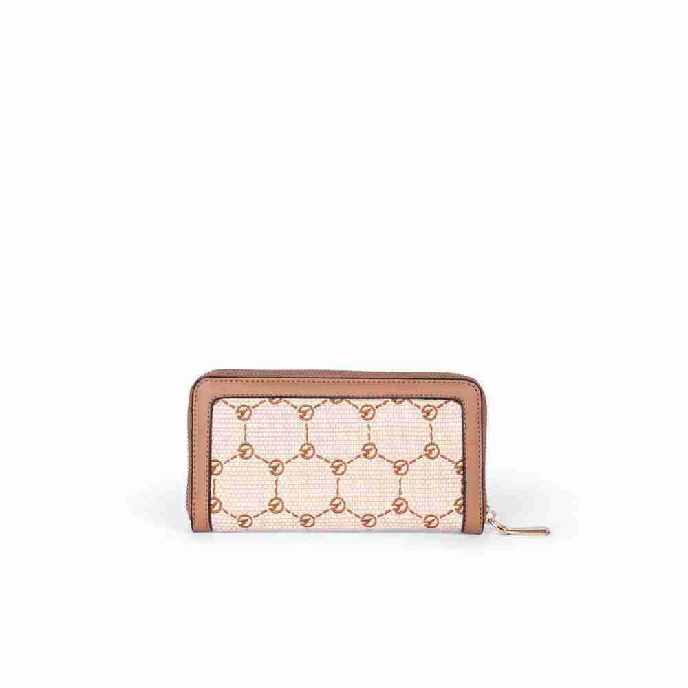 Portafoglio donna Gattinoni Roma Ada Straw Portafoglio donna Gattinoni Roma Ada Straw in tessuto stampato ed ecopelle. Il portafoglio dotato di chiusura con cerniera, tasca portamonete, portabanconote e carte di credito.