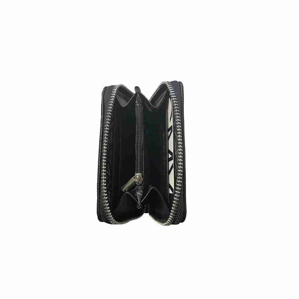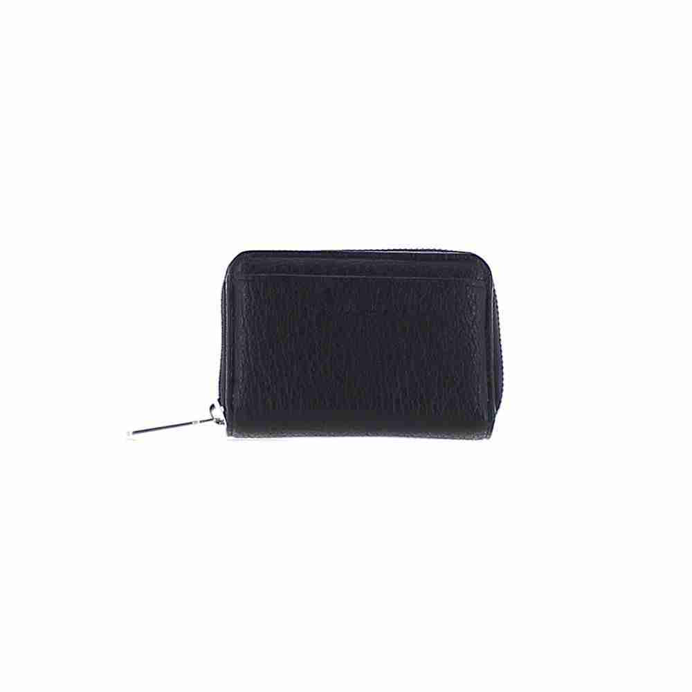 Portafoglio donna Gianmarco Venturi Portafoglio donna Gianmarco Venturi in ecopelle con due tasche esterne per le carte. Internamente ha una zip centrale per le monete e 4 vani per carte.