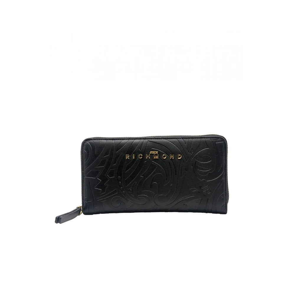 Portafoglio donna John Richmondo Godik Portafoglio John Richmond in similpelle con trama astratta logata incisa. Il portafoglio ha una chiusura con zip e diversi scompartimenti per carte, monete e banconote.Scritta logata oro in rilievo frontale