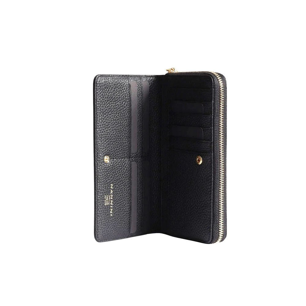 Portafoglio donna Nannini Wallis Portafoglio Nannini Wallis in pelle martellata con chiusura con zip e diversi scompartimenti interni per banconote, carte e monete.