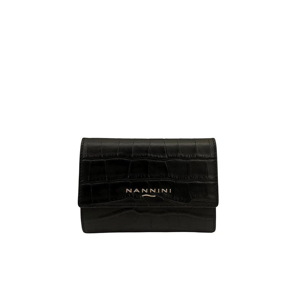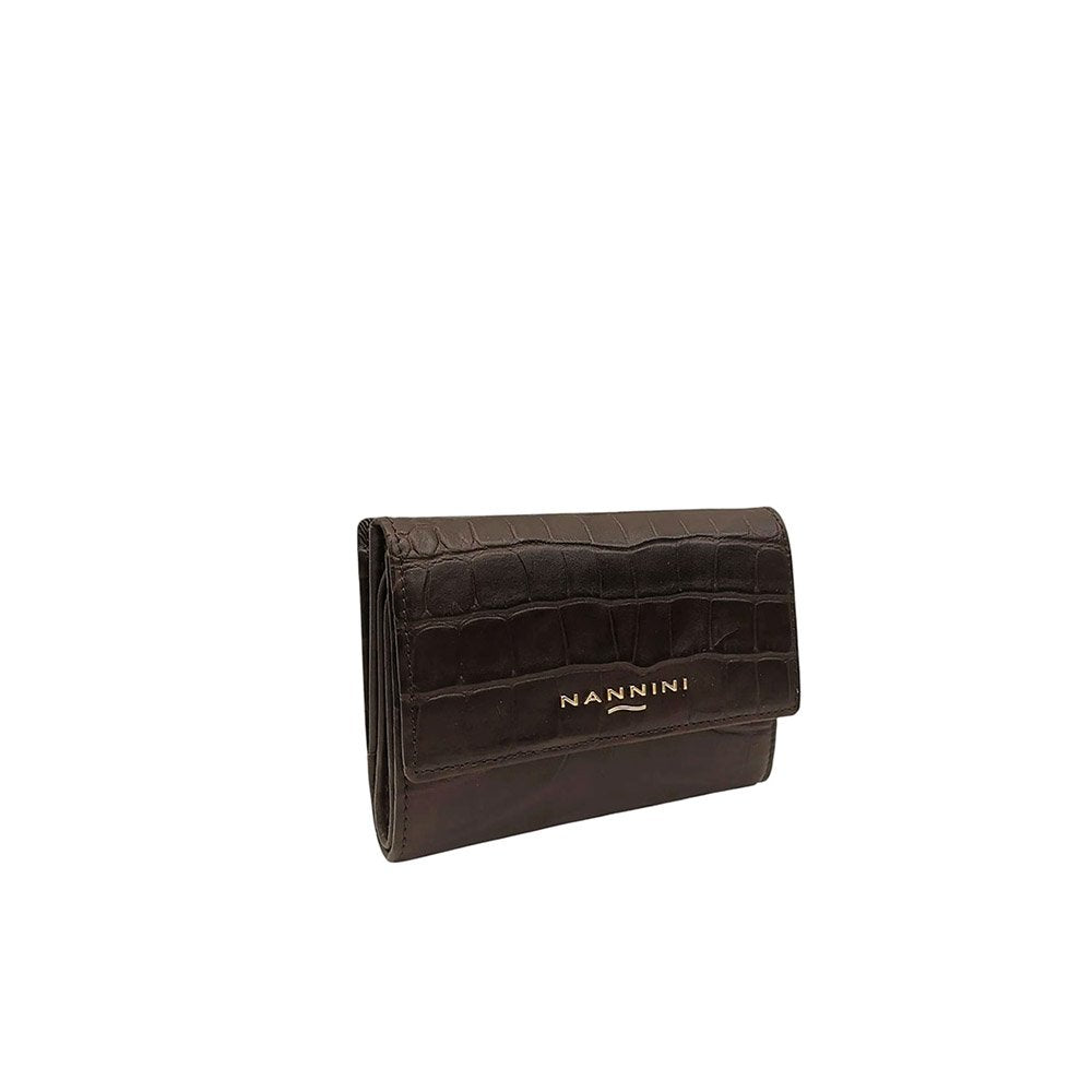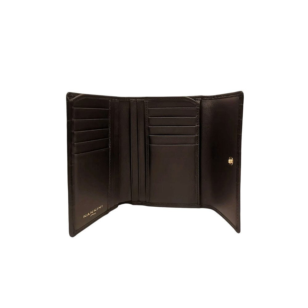 Portafoglio donna Nannini Wallis Portafoglio Nannini Wallis in pelle stampa cocco con chiusura con bottone, 10 scompartimenti portatessere e scomparto per banconote. Tasca esterna portamonete chiusa da zip.