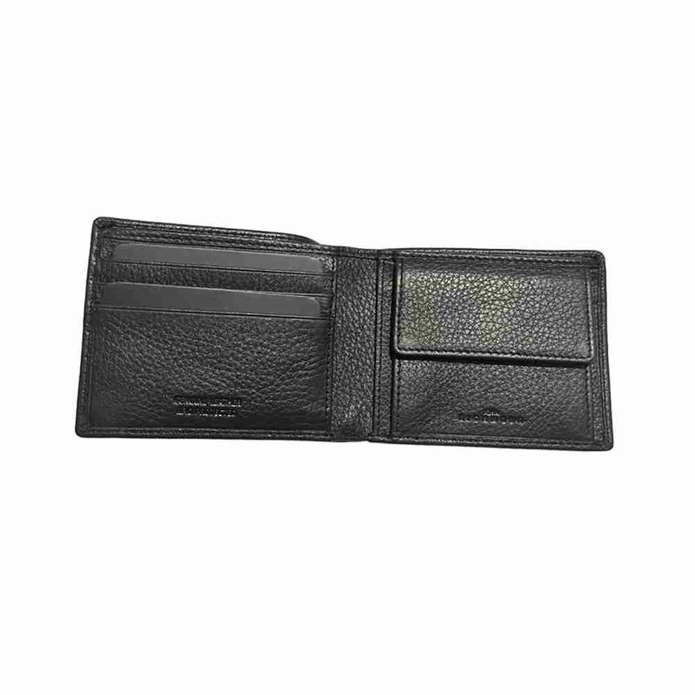 Portafoglio piccolo uomo John Richmond Portafoglio piccolo uomo John Richmond realizzato in vera pelle. Internamnete ha 4 spazi portacarte , portamonete con bottone e due vani portabanconote.