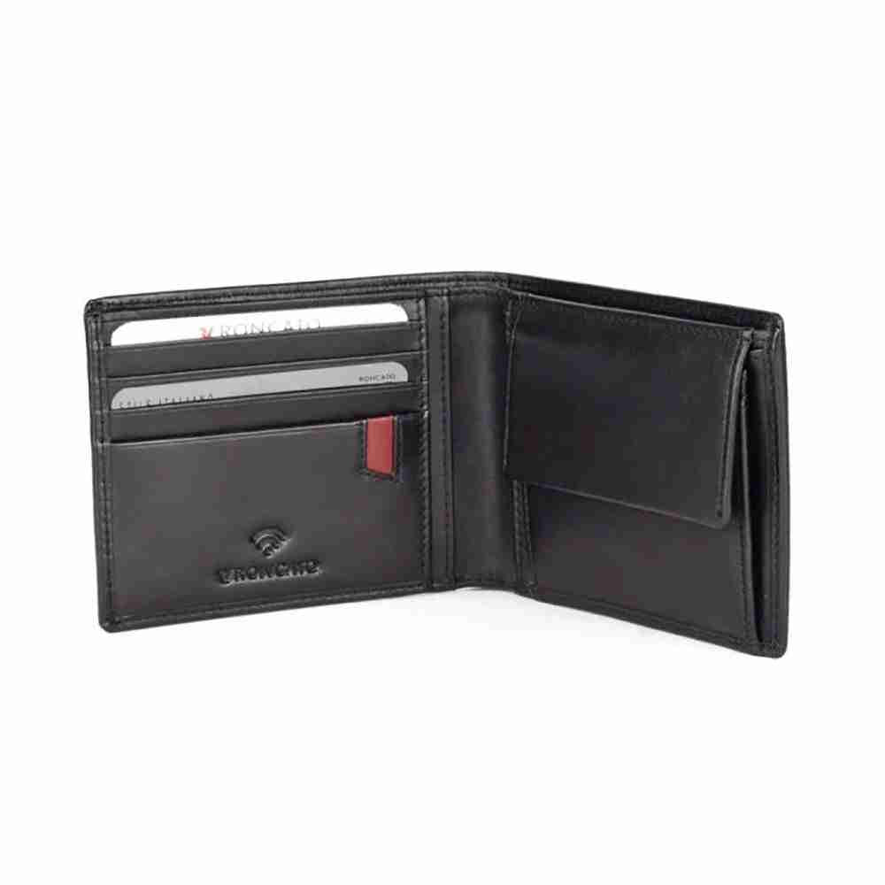 Portafoglio uomo piccolo Roncato Pascal Portafoglio uomo Roncato, realizzato in vera pelle. Design semplice con il logo del brand sulla parte frontale. Il portafoglio presenta doppio scomparto per banconote, 6afessure per carte di credito e una tasca con clip per monete.Dotato di sistema antifrode RFID per proteggere bancomat e carte di credito da una possibile clonazione.