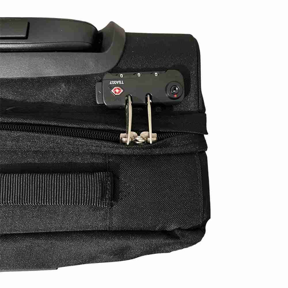 Trolley cabina Romeo Gigli Trolley cabina Romeo Gigli realizzato in robusto tessuto. Il trolley presenta 4 ruote multidirezionali, maniglia superiore e laterale, ampia tasca esterna, 4 cinghie di compressione laterali, chiusura con combinazione a 3 cifre e sistema TSA.Internamente foderato con divisori ferma abiti e tasca porta oggetti.