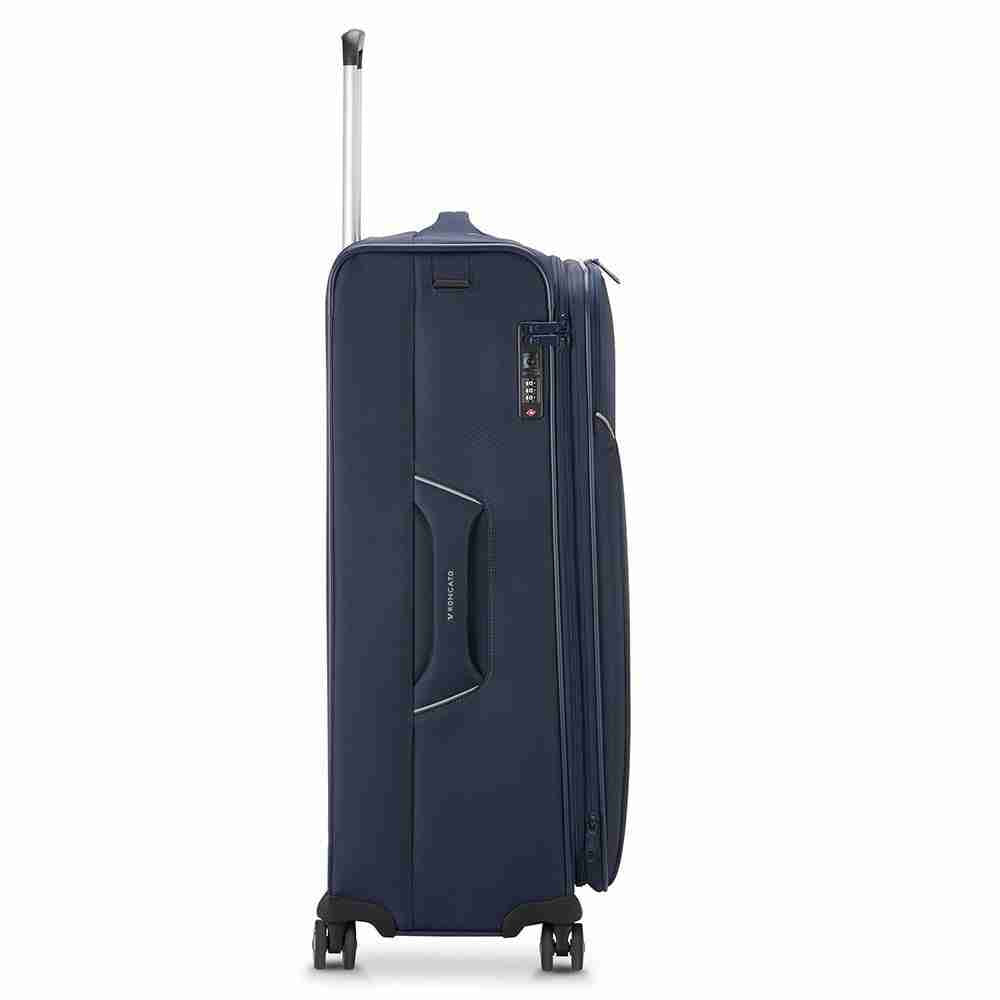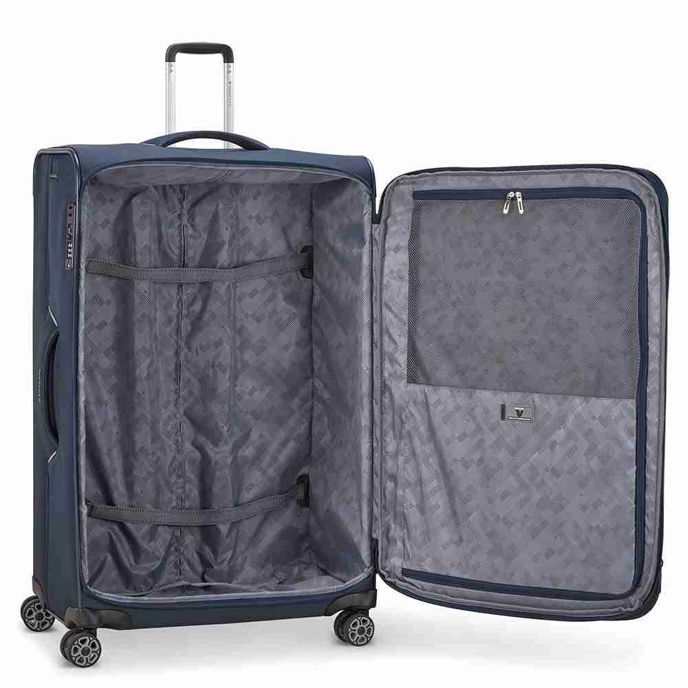 Trolley grande Roncato Exp. Ironik 2.0 Trolley grande Roncato linea Ironik 2.0 espandibile, realizzato in robusto poliestere. Il trolley dotato di 4 ruote multidirezionali, chiusura con combinazione e funzione TSA per controllo doganale, ampia tasca frontale e possibilit di espansione. All interno presenta divisorio con chiusura a zip ed elastici ferma biancheria.Capacit 102-119 L