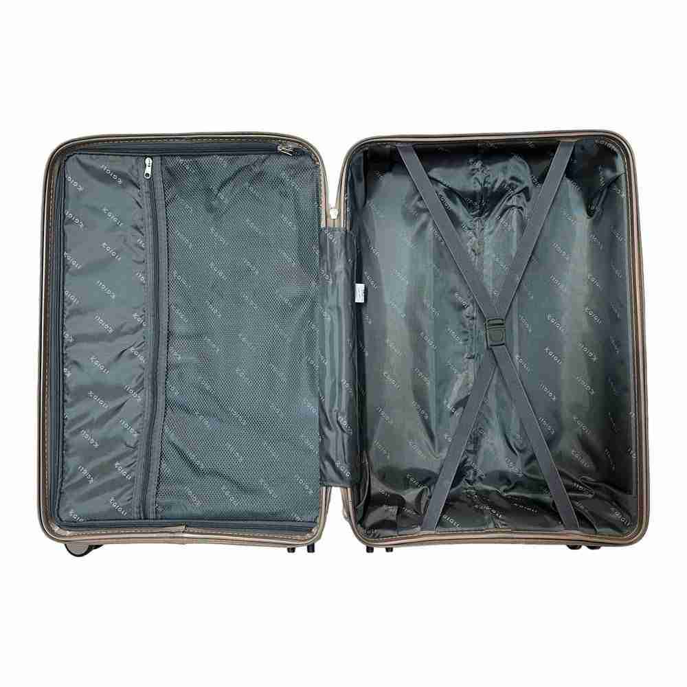 Trolley medio Romeo Gigli Trolley medio Romeo Gigli, realizzato in resistente ABS. Il trolley presenta 4 ruote multidirezionali, maniglia superiore e laterale e chiusura con combinazione. Interno interamente foderato, organizzato con fasce ferma abiti e tasca con zip.