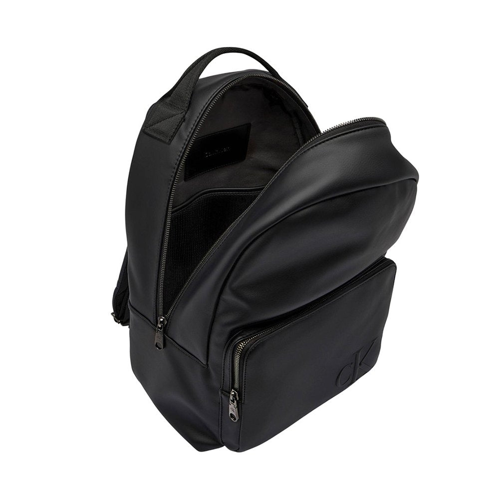 Zaino Calvin Klein Zaino Calvin Klein in ecopelle con manico e spallacci regolabili. Chiusura a zip a due vie, cinghia sul pannello posteriore consente di agganciare sulla maniglia di una valigia, compartimento per laptop o tablet.