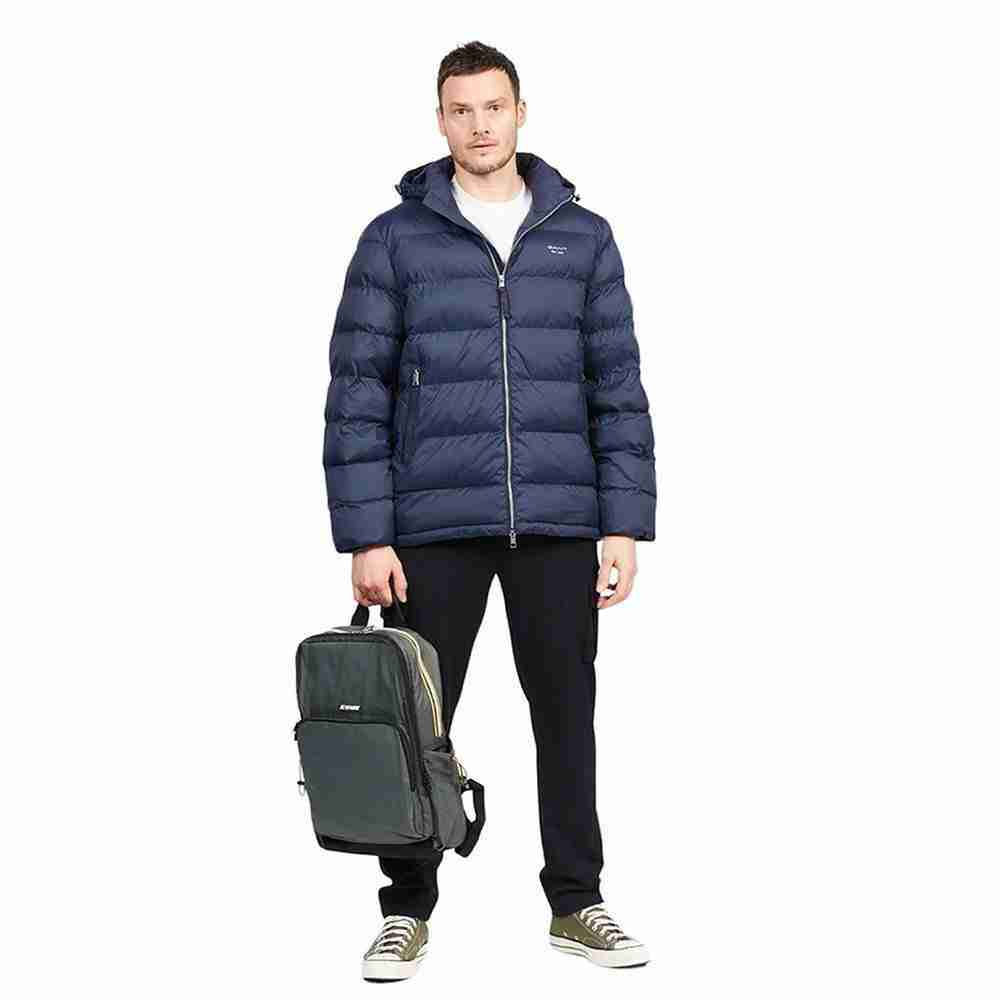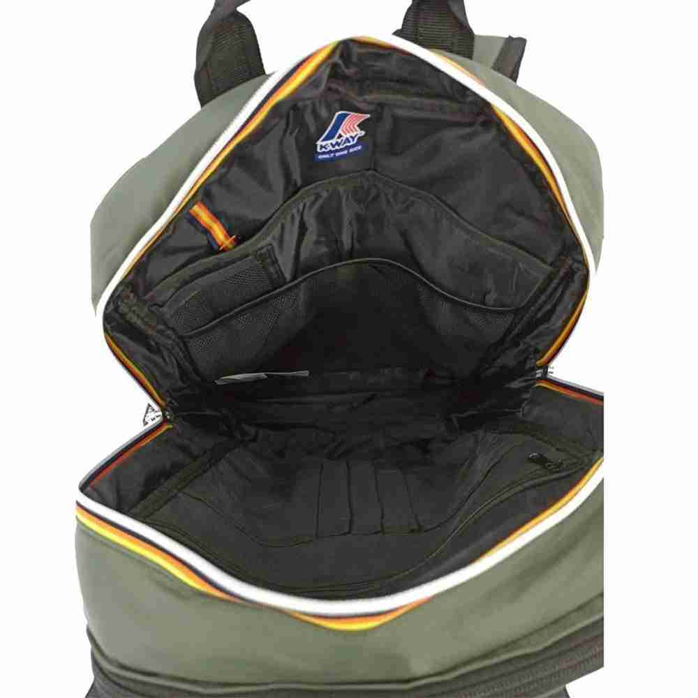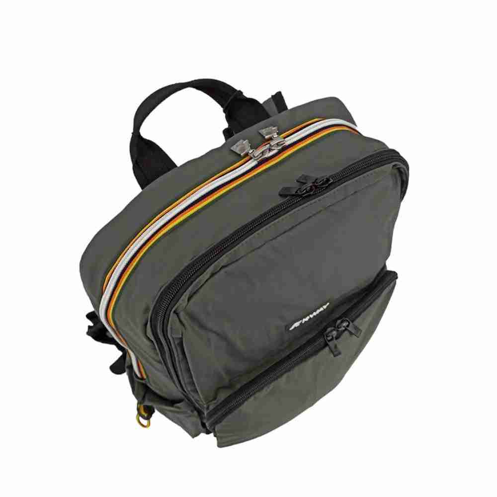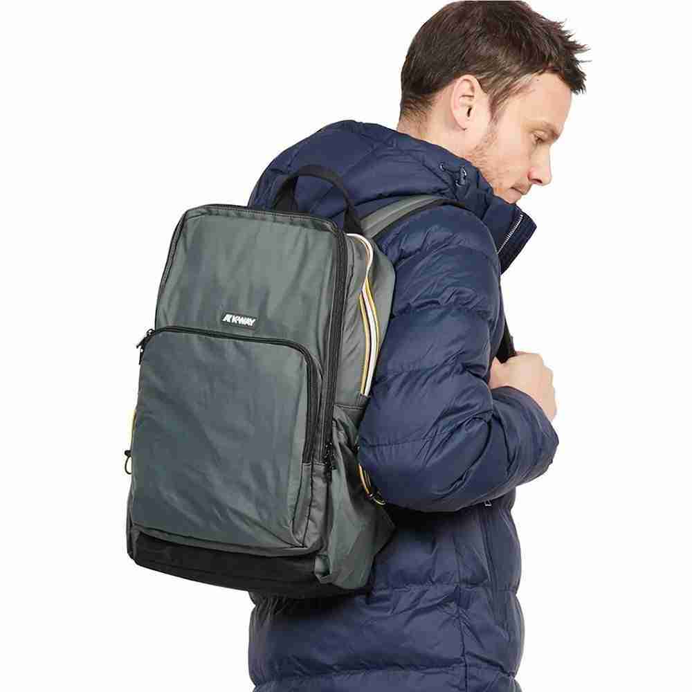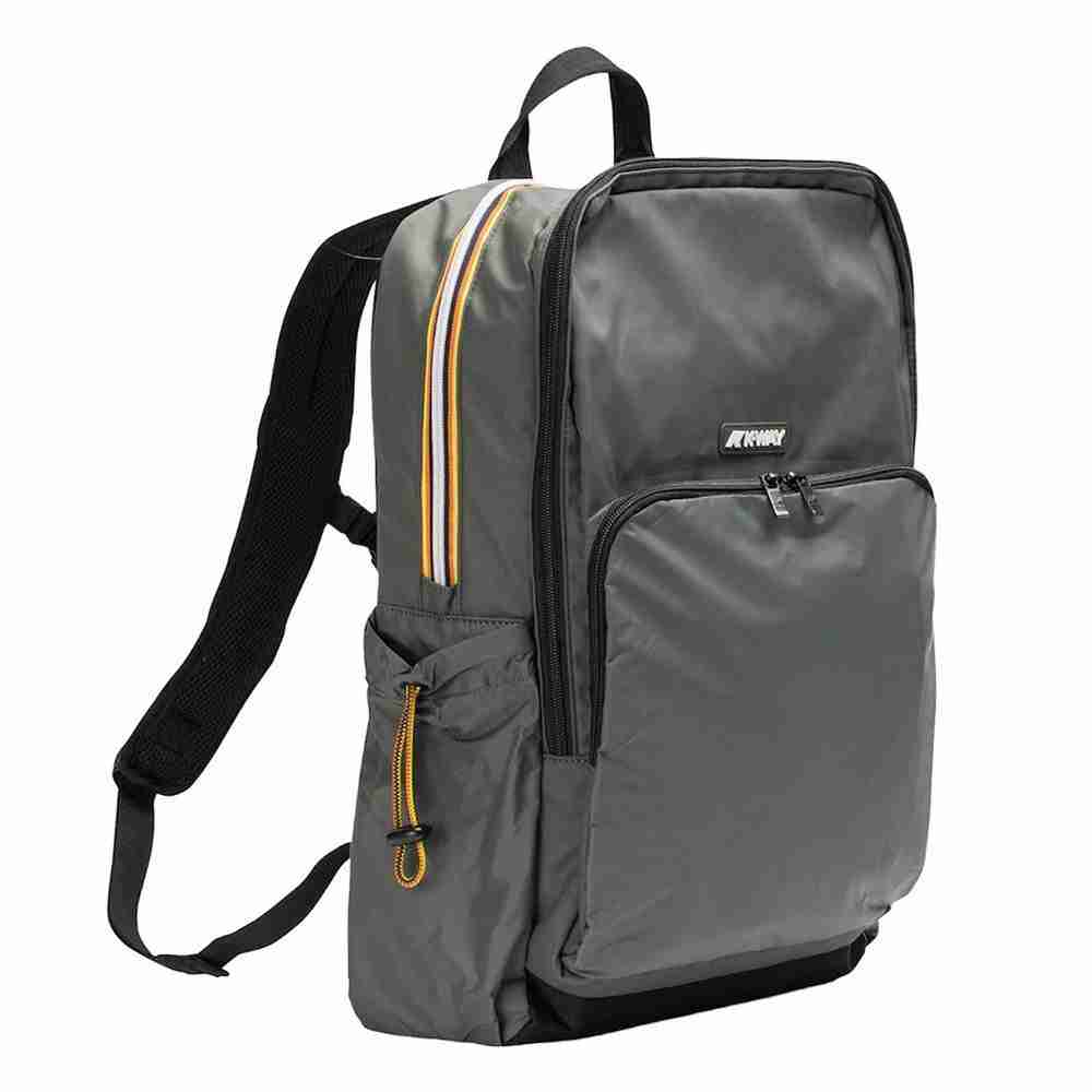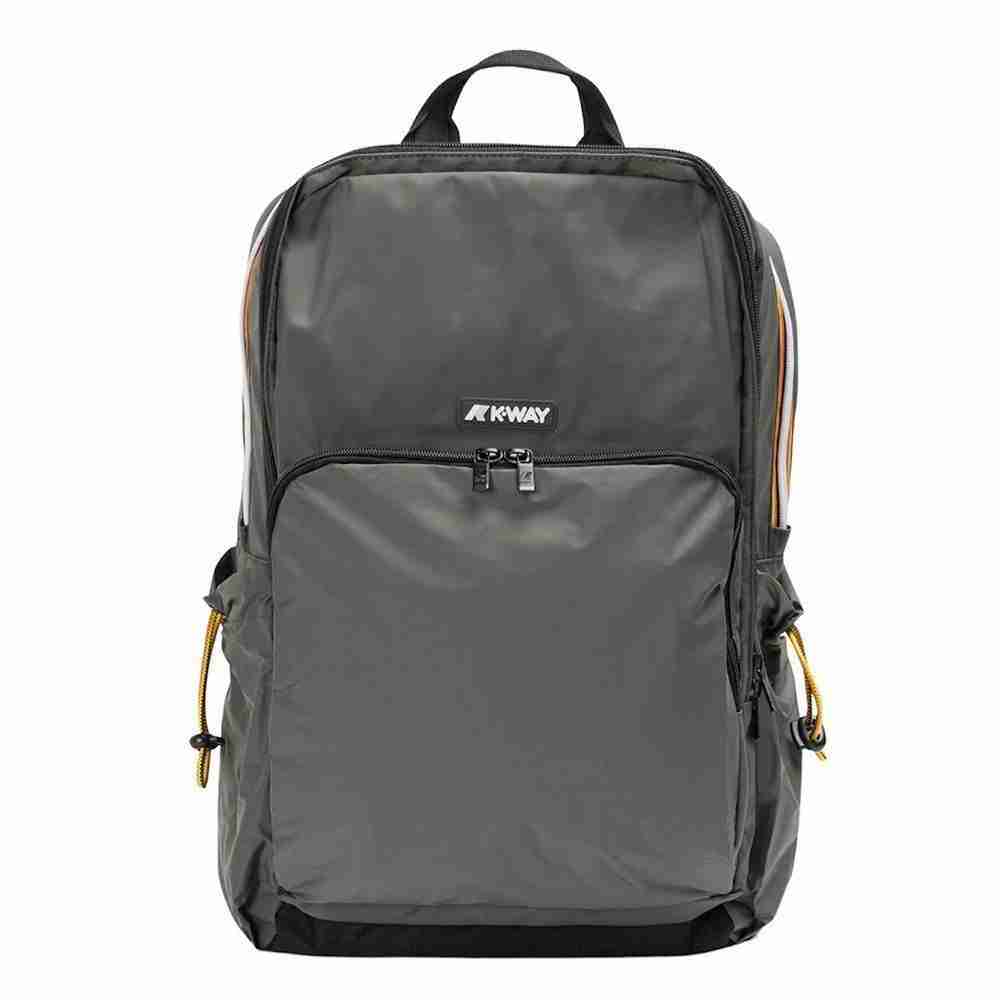 Zaino K-Way Gizy Zaino K-Way modello Gizy, realizzato in tessuto impermeabile e antivento. Lo zaino dotato di due tasche frontali con zip e due tasche laterali con chiusura regolabile. Schienale in rete imbottito e spallacci regolabili.Internamente presenta scomparto imbottito porta pc e varie tasche multifunzione.