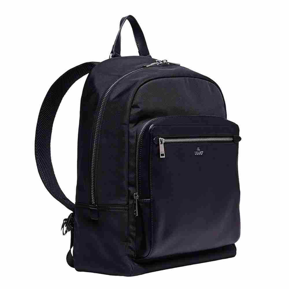 Zaino Liu Jo Moveback Zaino uomo Liu Jo Moveback, realizzato in nylon, con dettagli in ecopelle. Lo zaino presenta ampio scomparto centrale con chiusura con zip, doppia tasca frontale, logo metallico, spallacci regolabili e schienale imbottito.Fascia per aggancio al trolley. Al suo interno dotato di scomparto imbottito porta pc e varie tasche multifunzione.