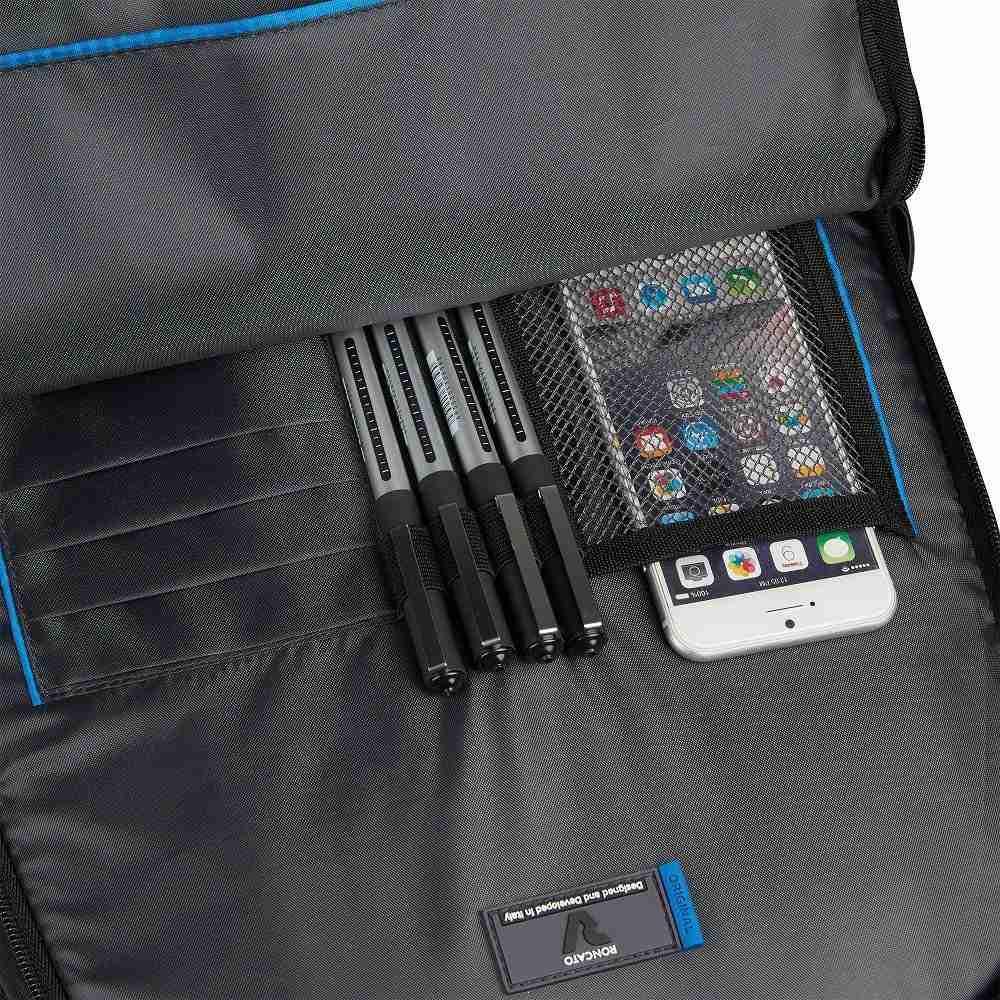 Zaino Roncato 15.6 Easyoffice 2.0 Zaino Easy Office 2.0 in tessuto tecnico. Lo zaino presenta 3 scomparti chiusi con zip e un taschino esterno sempre con cerniera. All interno possibile inserire un PC da 15,6 e documenti, inoltre dotato di tasche per carte di credito e portapenne.