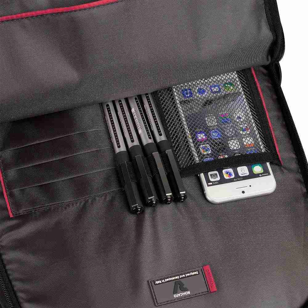 Zaino Roncato 17.3 Easyoffice 2.0 Zaino Easy Office 2.0 in tessuto tecnico. Lo zaino presenta 3 scomparti chiusi con zip e un taschino esterno sempre con cerniera. All interno possibile inserire un PC da 17,3 e documenti, inoltre dotato di tasche per le carte di credito, portapenne.