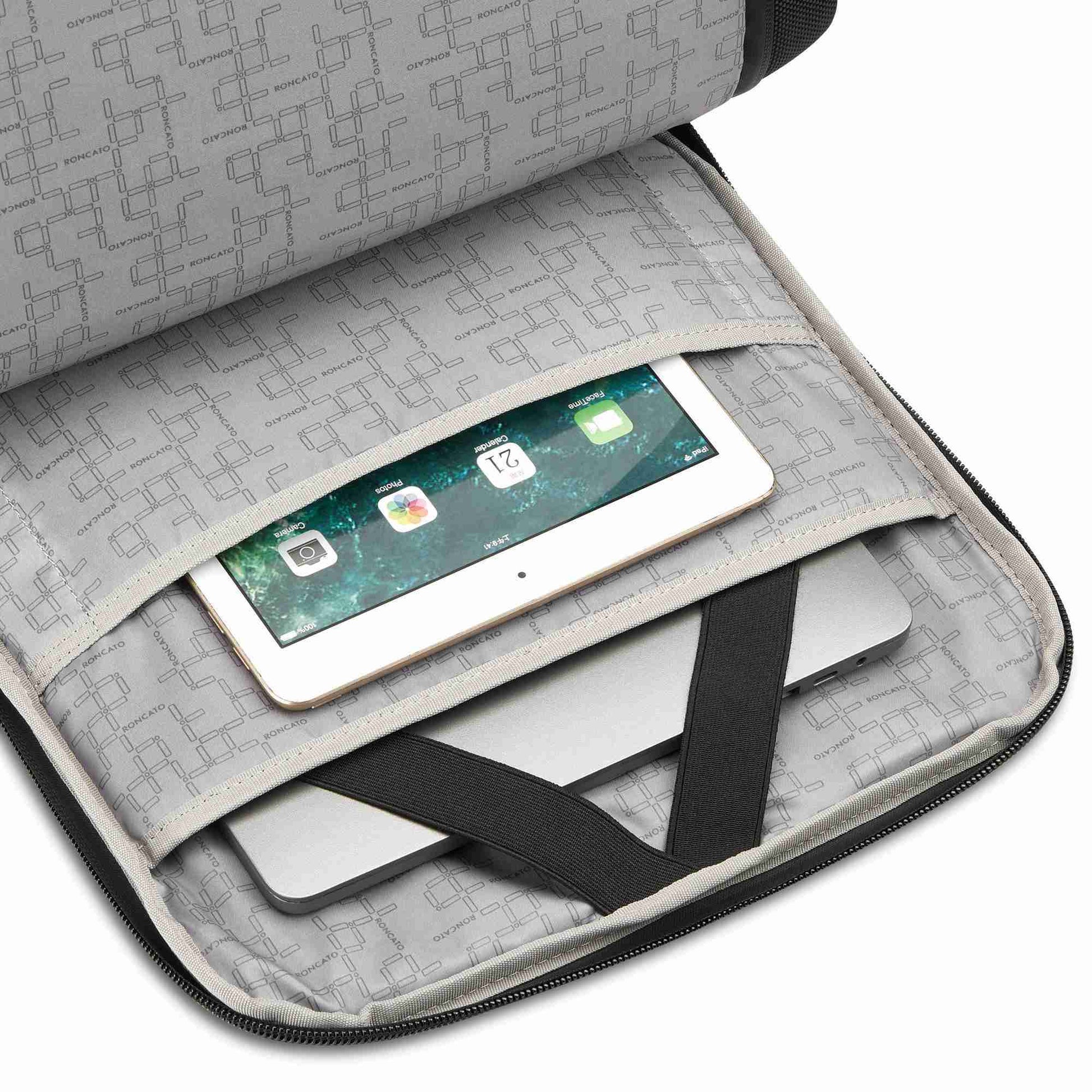 Zaino Roncato Trial 14 Zaino Roncato Trial 14 . Realizzato in robusto nylon e poliestere, spallacci e schienale gommati e traspiranti. Due tasche principali con vano porta pc 14 e tablet, tasca frontale.Passante asta trolley posteriore. Maniglia superiore. Capacit interna 16L