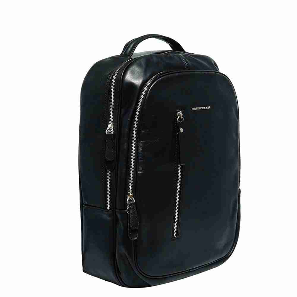 Zaino uomo Momo Design Zaino uomo Momodesign, realizzato in vera pelle. Logo metallico frontale, doppio scomparto con chiusura a zip, tasca frontale con zip, vano porta pc, maniglia superiore e spallacci imbottiti e regolabili.